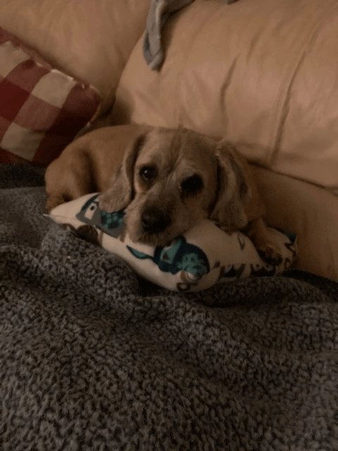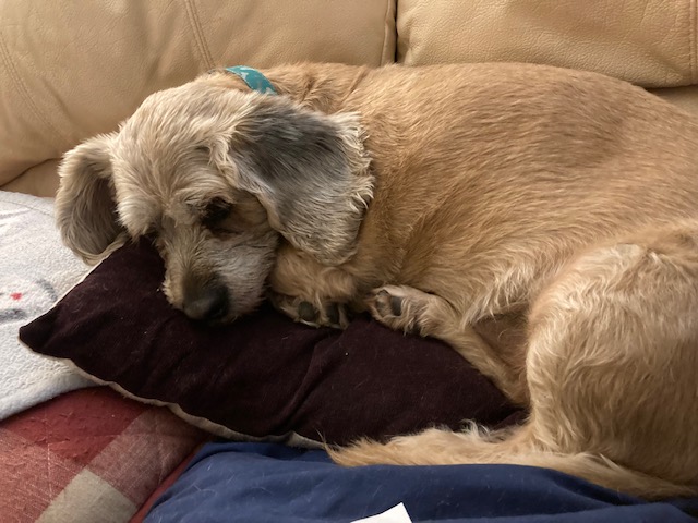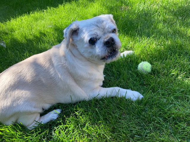 Frankie will always be remembered as one of the sweetest, kindest and silliest looking dogs ever!! I usually kept his hair short and in doing so, he looked a little bit like a cartoon character! He was very silly… he preferred drinking water out of the bath tub! He very much enjoyed just cuddling next to whomever! He had the biggest, almost “Dumbo-style” ears! :0) He had these sweet, beautiful, kind-soul type, big, brown eyes! He also had a super long tongue… that I would refer to lovingly as a “lizard-tongue”. His nicknames were “Frankie Frank” and (from my brother mostly), “Monster”. We sometimes called him “Frank the Tank” too. His tail would whip excitedly whenever I came home (or in the mornings waiting to be let out), and he would whip it against the wall by the door when I entered… it would make this loud, thumping sound (which always surprised me that it never seemed to hurt or bother him to do this). He would also sense when I was tired or about to have a migraine and would try to get me to stop whatever I was doing to just sit with him on the couch. He also very much liked to lay on his back with his legs spread out! He was a character for sure!! He will forever be missed… but I am so very grateful to have had him in my life for as long as I did. Sammy was sad when he initially realized that Frankie would not be coming home (I did not take Sammy with me to the vet. My brother was kind enough to watch him). But, Sammy has been enjoying all the attention to himself. He is especially enjoying playing with his little yellow ball! (Frankie didn’t like to play fetch or with toys in general… it actually irritated him to watch Sammy play sometimes).